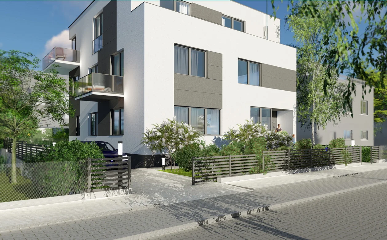 W ramach Inwestycji powstanie nowoczesny i zarazem kameralny III kondygnacyjny budynek 8 - lokalowy. Na parterze znajdzie się lokal mieszkalny o powierzchni 62,03 m2 z wyjściem na ogród. Na wyższych kondygnacjach zaprojektowano po 3 mieszkania na każdej kondygnacji o powierzchni 43 m2 - 54 m2, każde z balkonem.
