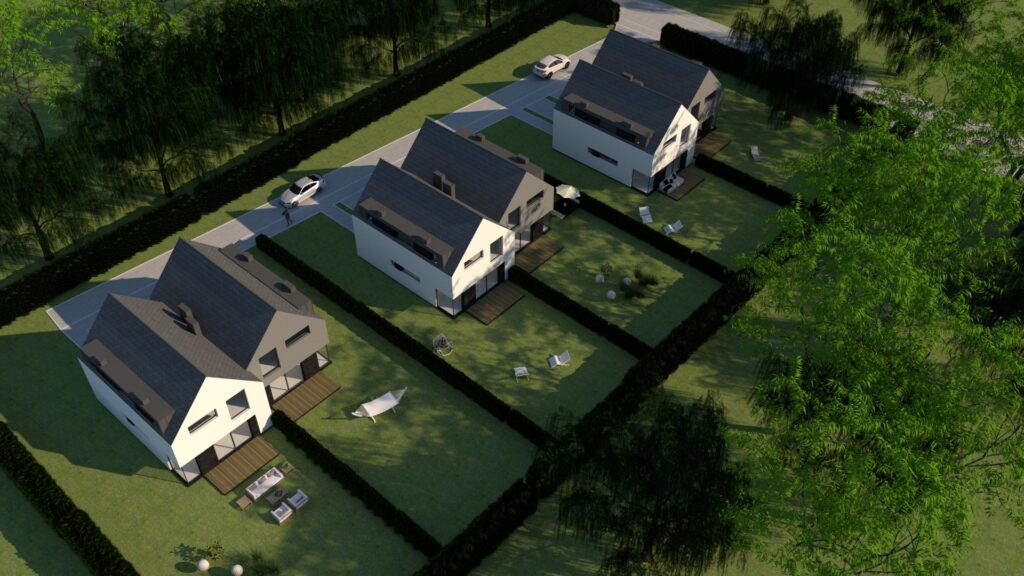 W ramach projektu na działce o powierzchni 3.000 m2 powstaną trzy budynki jednorodzinne w zabudowie bliźniaczej. Każdy dom na naszym osiedlu to 123 m2 powierzchni użytkowej z propozycją aranżacji, która sprosta gustom naszych najbardziej wymagających Klientów.
